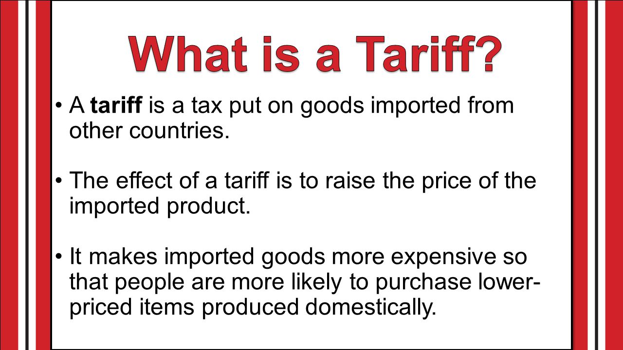 What+is+a+Tariff+A+tariff+is+a+tax+put+on+goods+imported+from+other+countries.